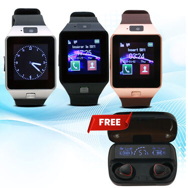 3 in 1 Smart Mobile Watch + Free Wireless Bluetooth Earpods with Charging Case & Inbuilt Powerbank (BCSW10)