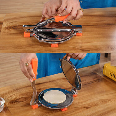 Make perfect chapatis and puris effortlessly with the Kitchen Queen Chapati & Puri Maker. Crafted from durable stainless steel, it ensures years of reliable performance. Its 6.5-inch diameter is ideal for round-shaped rotis. The anti-skid heavy base provides stability, while the rubbered handle ensures smooth operation. Say goodbye to traditional belans and chaklas â?? simply press and make round chapatis in seconds. Plus, with its non-electric design, it's convenient and easy to use. And as a bonus, enjoy a free Danish dough maker/mixer, perfect for mixing various types of dough and batter effortlessly