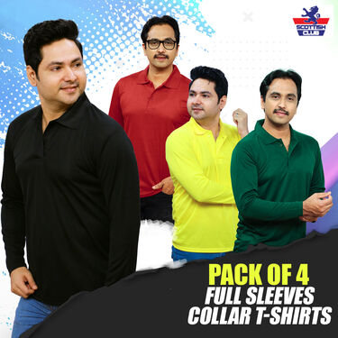 Upgrade your wardrobe with the Pack of 4 Premium Full Sleeves Collar Neck T-shirts for Men specially designed for fashionable and smart look. Made from 100% polyester material, these vibrant colors T-shirts are breathable and keeps you sweat free throughout the day. The regular fit of the Collar Neck T-shirt is comfortable enough to be wear on any physique and gives you more stylish as well as trendy look that will go easily with any denims, chinos and shorts.