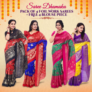 ELEVATE YOUR STYLE QUOTIENT - Pack of 4 Foil Work Sarees (4FPS1)