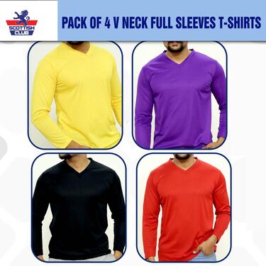Pack of 4 V Neck Full Sleeves T-shirts (4VTF1)