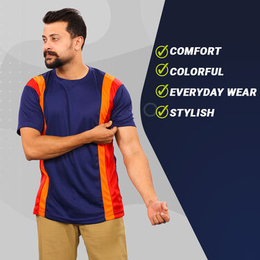 Experience comfort and style with our pack of 5 Designer Round Neck T-shirts. Crafted from premium, wrinkle-resistant fabric, these tees offer ultimate comfort and ease of maintenance. Perfect for everyday wear, they come in a versatile color set and are available in 5 sizes to fit all body types. Whether you're running errands or hitting the gym, these stretchable and quick-dry tees have got you covered. Elevate your wardrobe with these must-have essentials that provide maximum comfort and flexibility for all-day wear. Easy to maintain with both hand and machine wash options, they are the perfect addition to your collection