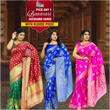 Pick Any 1 Banarasi Jacquard Saree with Blouse Piece (BJS-1)