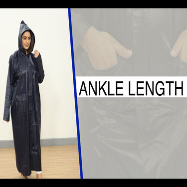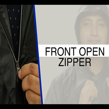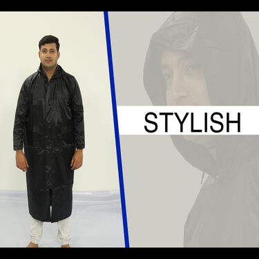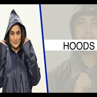 - The jacket consists of full sleeve raincoat with hood