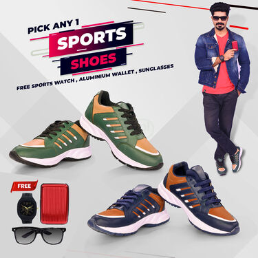 Pick Any 1 Sports Shoes With Free Sports Watch + Aluminium Wallet + Sunglasses (SSC2)