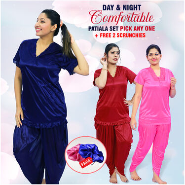 Pick Any 1 Women's Patiala Top And Pyjama Set + 2 Scrunchies Free (WPS-1)