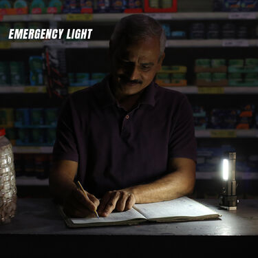 - 6 in 1 Functions: 1. High beam light, 2. Emergency Light, 3. Table lamp, 4. Hammer, 5. Cutter, 6. Emergency Powerbank