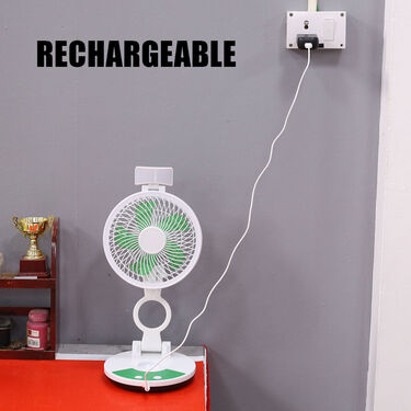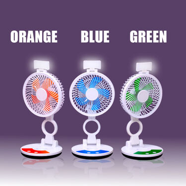 Introducing the ultimate rechargeable portable folding fan with light, your personal cooling solution for all seasons. With its compact and foldable design, this fan is perfect for use in kitchens, offices, shops, or while traveling. Enjoy up to 2 feet of air throw with 4 adjustable speeds to suit your preference. The fan also features a timer function and adjustable height and angle for added convenience. Its USB-powered operation ensures energy efficiency, while the quiet operation makes it suitable for any environment. Available in green, orange, and blue, this fan is both stylish and functional, providing comfort wherever you go