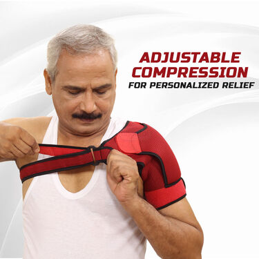 Our shoulder support helps alleviate discomfort with adjustable compression for tailored relief and mobility. Crafted from breathable materials, it ensures comfort for all-day wear during various activities. Built with durable construction and reinforced stitching, it provides reliable, long-term support. Helps reduce pain and inflammation with gentle compression. Improved stability and support promote healing and prevent further injury for enhanced mobility
