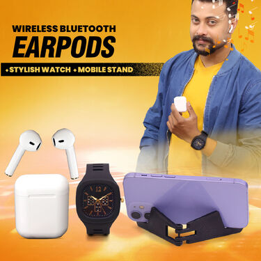 UPGRADE YOUR AUDIO GAME - Wirless Bluetooth Earpod i12 + Stylish Watch + Mobile Stand (BCSW11)