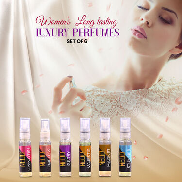 Elevate your fragrance game with NEUD's Women's Set of 6 Perfumes (WSOP). Crafted with advanced CP technology, each 10ml vial offers a super long-lasting performance, providing over 500 spritzes in total. This luxurious set includes scents for every mood and occasion, from the sensuous TIMELESS to the rebellious MAGNET. With captivating floral, fruity, and oriental notes, these perfumes ensure you radiate confidence and allure. NEUD, a premium personal care brand, brings you this exquisite collection to enhance your olfactory experience